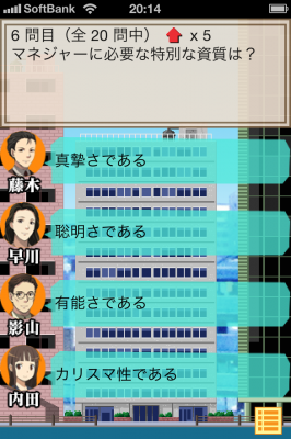 ゲームアプリ『ゲームで学ぶドラッカー入門』では、マネジメントに関する様々な問題に回答していくことで、ドラッカーに関連する用語や知識に対する自分の理解度を測ることができると共に、問題に何度も挑戦していくことで理解をより確かなものにすることができます。