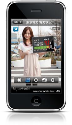 4月7日(木)には『美人天気Androidアプリ版』を配信開始し、iPhoneアプリ版・Androidアプリ版ともに東京電力エリアの電力使用状況を美人がお知らせする東京電力の電力状況機能を追加いたしました。