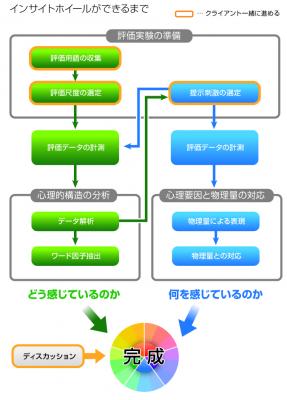 フィンチジャパンでは、クライアント企業の商品開発部門とともに、評価、調査、実験の現場から立会い、独自のノウハウによるデータの計測、解析を実施。それを元に開発部門担当者とディスカッションを重ね、インサイトホイールを制作します。