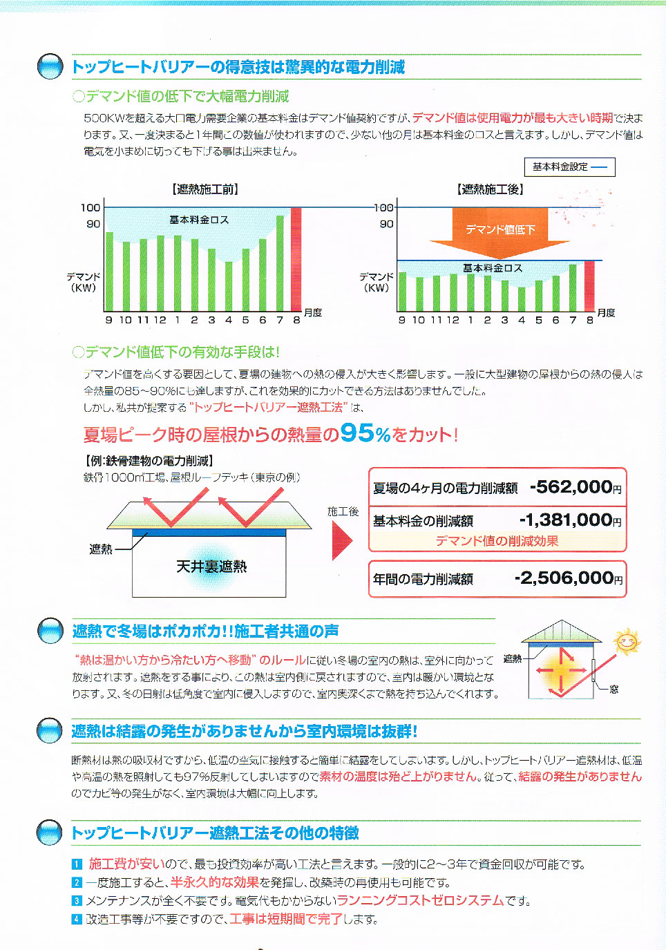 電力費用削減や節電、さまざまな室内温度対策に効果を発揮する『特殊遮熱工法トップヒートバリア』を