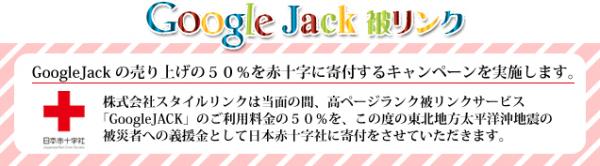 株式会社スタイルリンクは被災者の皆さまの救援ならびに被災地の復興にむけて、GoogleJack 高ページランク被リンクサービスのご利用料金3ヶ月分の50%を日本赤十字社を通し災害義援金として寄付するキャンペーンを実施いたします。
