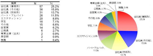セラピストとして働き始める以前の職業については「会社員(事務系)」と回答した人が25.2%、「会社員(その他)」と回答した人は15.9%、「会社員(技術系)」と回答した人は13.7%となり、過半数の人が会社員・OLからの転身組であるこということがわかりました。