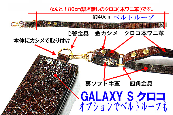 ■商品名:GALAXY Sクロコ縦BOOK型ケース(日本製)艶ブラウン