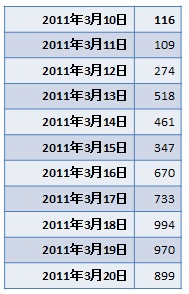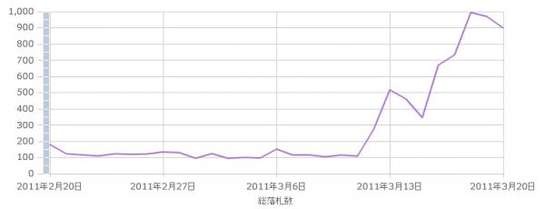 2011年3月11日までの平均落札数は、100件前後だったにも関わらず、