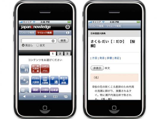 このたび小学館グループの株式会社ネットアドバンスが運営する、インターネット辞書・事典検索サイト「ジャパンナレッジ」(http://www.japanknowledge.com/)は、ユーザーが急増しているiPhone、Android端末などのスマートフォン向けに、さらに使いやすく見やすいインターフェースをリリースいたしました。