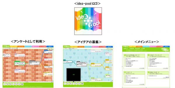 「idea-pool」は、「たのしく、つながる、みんなで、つくる!」をキャッチコピーに、リアルタイムでの情報共有を目的としたfacebookアプリケーションです。ユーザーは、トピックごとに“プール”を作成でき、みんなで意見を出し合い、画像や映像・ファイルなどの情報を“プール”上で共有できます。そのため、メーリングリストや掲示板などでは難しかった系統立てたアイデア共有が可能となりました。