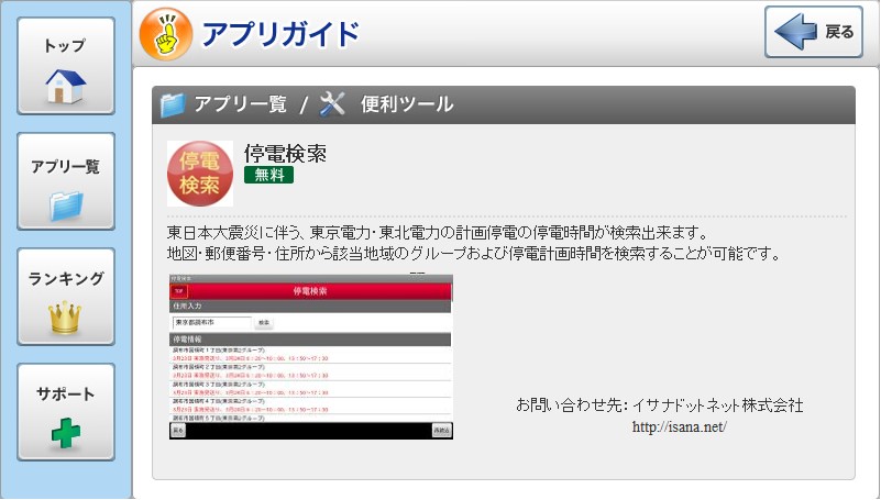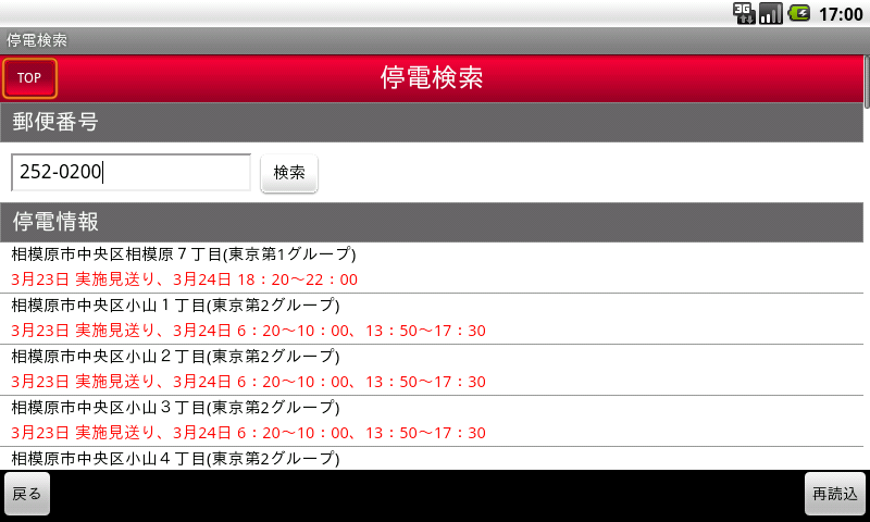 スマートフォン向けWeb版 計画停電検索 http://isana.net/teiden