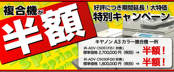 キヤノン複合機の本体とオプションを半額にてご提供!!