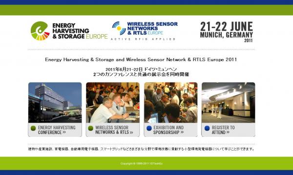「Energy Harvesting & Storage and Wireless Sensor Network & RTLS Europe 2011」の情報を提供するとともに、会議の参加のお申し込みを承っております。