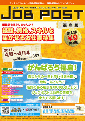 今後も掲載企業様、求職者様双方に魅力ある媒体となるよう、より一層のサービス向上に努め、地元福島県の復興を雇用促進の側面から貢献してまいる所存でございますので、求人情報誌「JOBPOST」にどうぞご期待下さい。