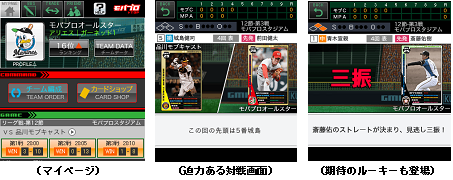 『モバプロ』のスマートフォン版では、スマートフォンならではのタッチパネルによりフィーチャーフォンを凌ぐ直観的な操作性と大画面・高品質を活かした臨場感ある試合画面で、本格的なプロ野球の世界観を実現しております。また、フィーチャーフォン版のユーザー名、カードデータ、アイテム課金のチャージ金額、プロフィールや各種コミュニティ情報は、メールアドレスや登録パスワードなどを使うことで、そのまま引き継ぐことができます。モブキャストでは、これからもより快適により楽しくユーザーに遊んでいただき、さらにユーザー同士のコミュニケーションがより活発となるよう、『モバプロ』の機能強化を行ってまいります。