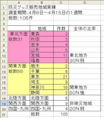防災グッズ地域別の販売売上