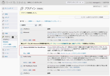 Choice RESERVEの管理画面からZip形式のプラグインをダウンロードし、WordPressの管理画面にて設定していただくことができます。