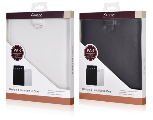 PA3 Leather Folio Caseシリーズは、2種類のカラーを用意しています。お好みのカラーを選べます。カラーはブラック、ホワイトです。