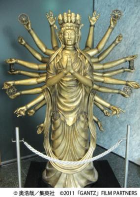 (原作・映画ともに仏像編のボスキャラクター。映画内においては無数の手にガンツスーツすら簡単に切り裂く強力な剣を携えて、縦横無尽な斬撃を繰り出す。映画では、実際に千手観音の造形物を製作し、それをCGと組み合わせる手法で非常にリアルなバトルシーンが作り出された。今回展示されている千手観音は、実際の撮影で使用された造形物)