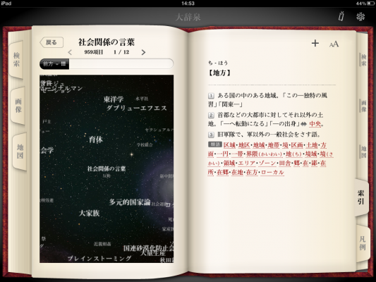 収録内容の鮮度と検索精度の高さで好評をいただいているiPhone/iPad向け国語辞典アプリ『デジタル大辞泉』がフルリニューアル!言葉の宇宙を漂うような新感覚の「索引」をはじめ、iPad向けの画面デザインがより美しく生まれ変わりました。先進の機能はそのままにさらなる進化をとげた『デジタル大辞泉』を、ぜひiPadでもご体験ください!