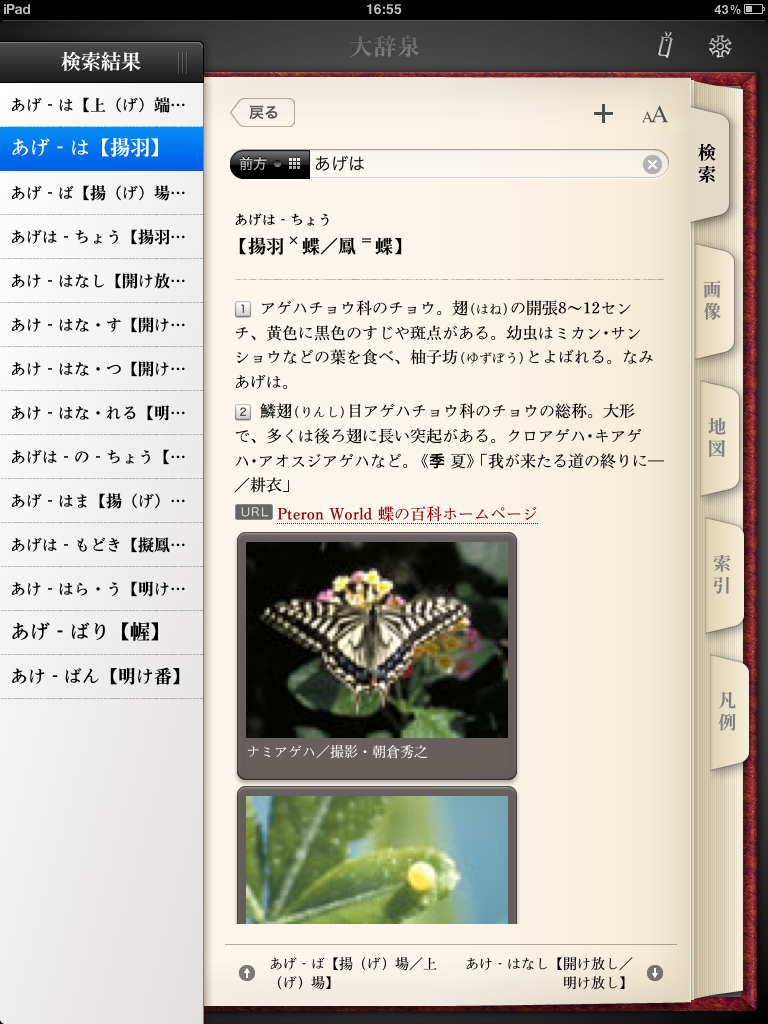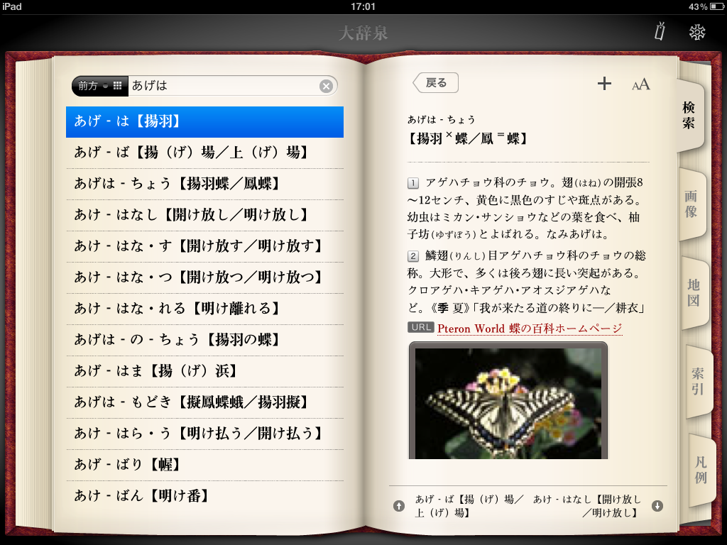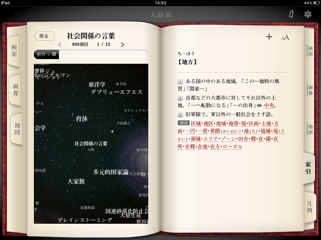 ・五十音順に前後の項目へ移動できるようにもなって、調べたい言葉とは別の言葉との「出会い」が増えることでしょう。