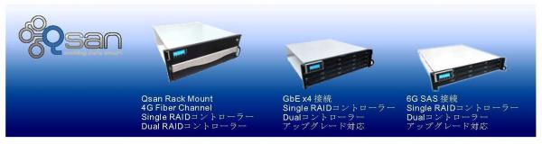 2*4Gb FCインターフェイス (各RAIDコントローラ) ,SAS/SATAディスクをサポート 4U-24ディスク /3U-16ディスク /2U-12ディスク & 2U-24ディスク (2.5”),RAID-6, 60、QSnap、Windows VSS機能サポート JBOD拡張端子装備 (144TBまで拡張可能) ,VMWare認証