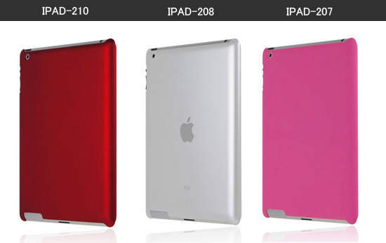 IPAD-210のカラーはイリディセントレッド、IPAD-208のカラーはフロスト、IPAD-207のカラーはピンクです。本体サイズは240mm×188mm×11mm、重さは約63gです。付属品はクリアタイプの液晶保護フィルム、アンチグレアタイプの液晶保護フィルム、クリーナークロス、スクレーパーです。