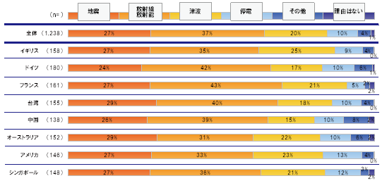 訪日に抵抗を感じる理由は「放射能・放射線」、次いで「地震」「津波」「停電」