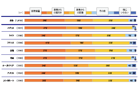 l 「放射能・放射線」に特に抵抗を感じているのは、フランス(43%)、ドイツ(42%)、台湾(40%)、中国(39%)。