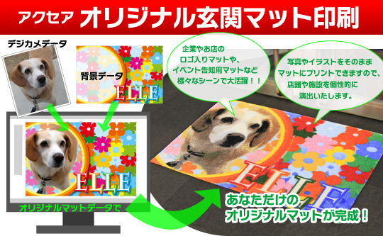 アクセアの「オリジナル玄関マット印刷」は、あなただけのオリジナルマットを製作するサービスです。