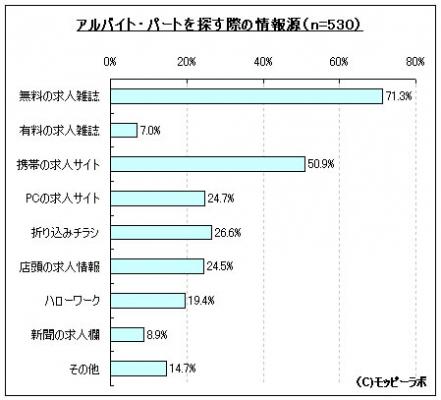 図表参照:アルバイト・パートを探す際の情報源(n=530)