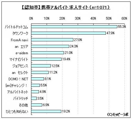 図表参照:知っている携帯アルバイト求人サイト(n=1,071)