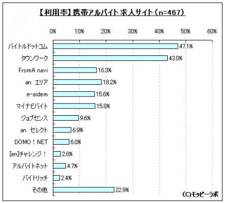 図表参照:利用したことがある携帯アルバイト求人サイト(n=467)