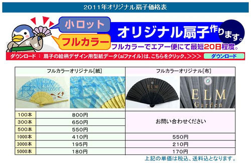 安で出来る扇子の制作単価表をアップしま