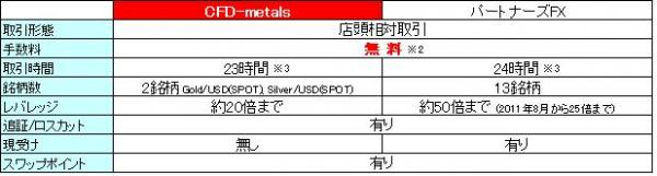 【マネーパートナーズ「CFD-metals」 詳細 (当社の外国為替証拠金取引「パートナーズFX」との比較)】