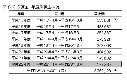 今回は平成22年4月から平成23年3月の間に集めた177,285円を寄付した。