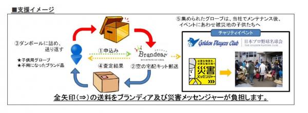 『ブランディア』では、4月22日よりブランド品宅配買取ダンボールの“不用なスキマ”と「送って戻ってくる」宅配買取ならではの“物流の仕組み”を活用して、全国から少年用グローブの寄付を集めておりました。(通常、寄付にかかる国内送料を、当社及び災害支援組織『災害メッセンジャー』が個人消費者に代わって全額負担)