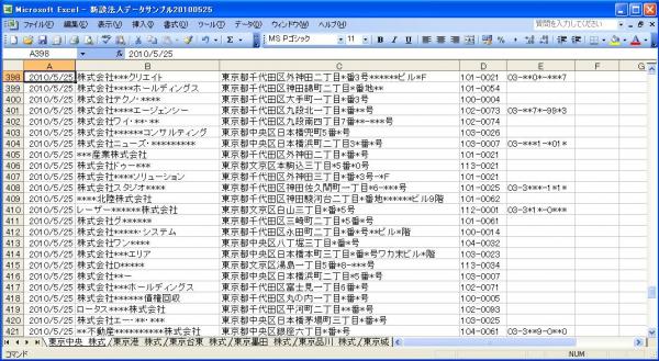 新設法人情報とは、全国で新規に設立された法人の情報をエクセルにまとめ、