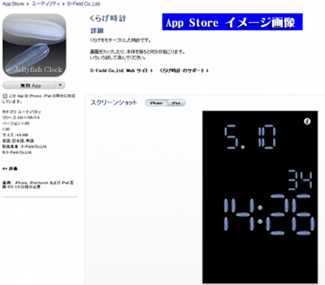クラゲをモチーフにした時計です。画面をタップしたり、本体を振ると何かが起こります。更に・・・時々ピクピク動いたり、長押ししているとそこに集まって来たり、ほったらかすと(3分)と勝手に動き出します。そして、そして・・・シェイクした時の動きに、クラゲが外周に散ったり、一点に集まる動きを追加しました。まずは貴方自身で触ってみて楽しんでください。でも、時計です。