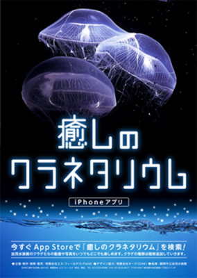 世界一のクラゲの加茂水族館監修のiPhoneアプリ『癒しのクラネタリウム』。間もなくver.1.0シリーズも公開となります。各クラゲのハイビジョン撮影動画を4分程度長尺でお楽しみ頂けます(日本での販売価格/115円を想定)。更に、iPhoneアプリ『癒しのクラネタリウム』のAndroid版の開発が間もなく開始となります。それに先立ちましてAndroid携帯に実装して頂けるミズクラゲの動画をyoutubeにて公開しています。是非、ダウンロードして頂き、一足先にアプリ『癒しのクラネタリウム』Android版を疑似体験してみてください。