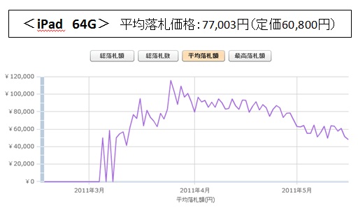 「iPad2」は国内では2011年4月28日に発売されており、オークション市場では先行して3月4月に人気が出たものと考えられます。