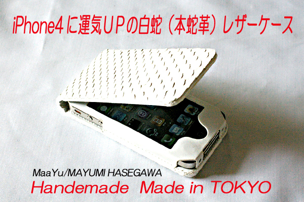 いつも持っているiPhone4用に、この運気UP白蛇革を使用したレザーケースを