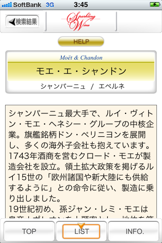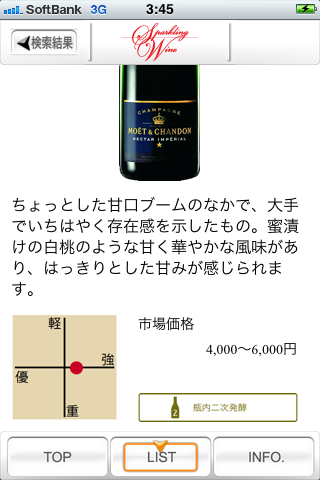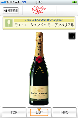■各ワインにボトル画像がついているので、レストランやワインショップで、ラベルのデザインを見ながらお目当てのスパークリングワインを探すことができます。