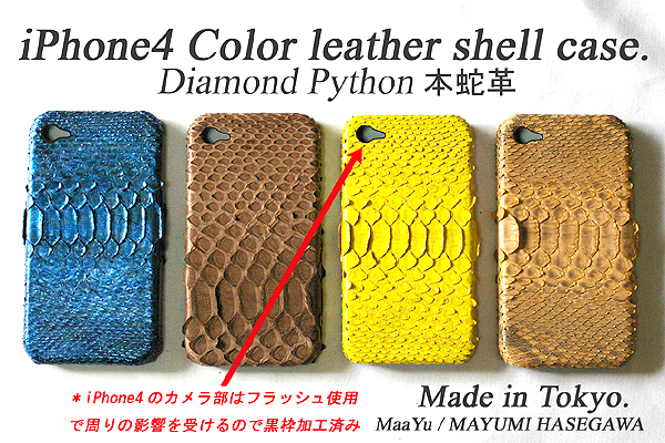 ■iPhone4カラー本蛇革片面シェルケース