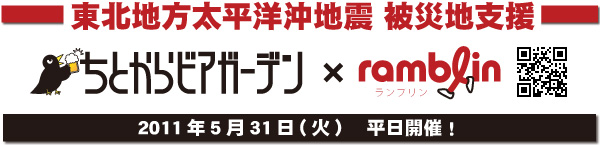 ちとからビアガーデン実行委員会(東京都世田谷区、実行委員長 倉田義和)は、株式会社関心空間(本社:東京都渋谷区、代表取締役 宮田正秀、以下関心空間)と、東通インテレクト株式会社(本社:東京都渋谷区、代表取締役 山見真弘、以下東通インテレクト)の協力で、2011年5月31日(火)に東北地方太平洋沖地震(東日本大震災)の被災地支援「ちとからビアガーデン」を開催致します。