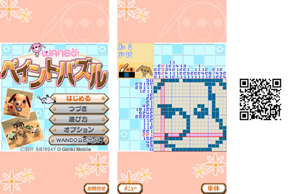 『WANBOペイントパズル』は、数字のヒントに従ってマスを塗っていき、隠されたロボドッグ「WANBO」の絵を見つけるパズルゲームです。全10ステージを収録し、ボリュームたっぷりな1本となっております。