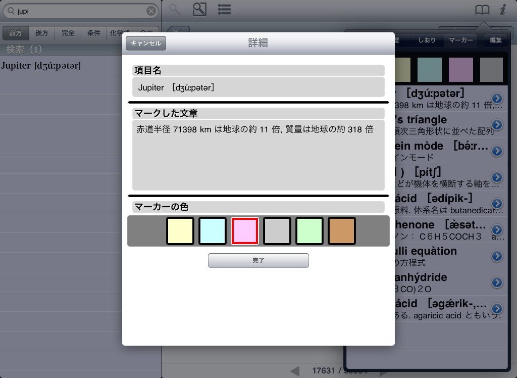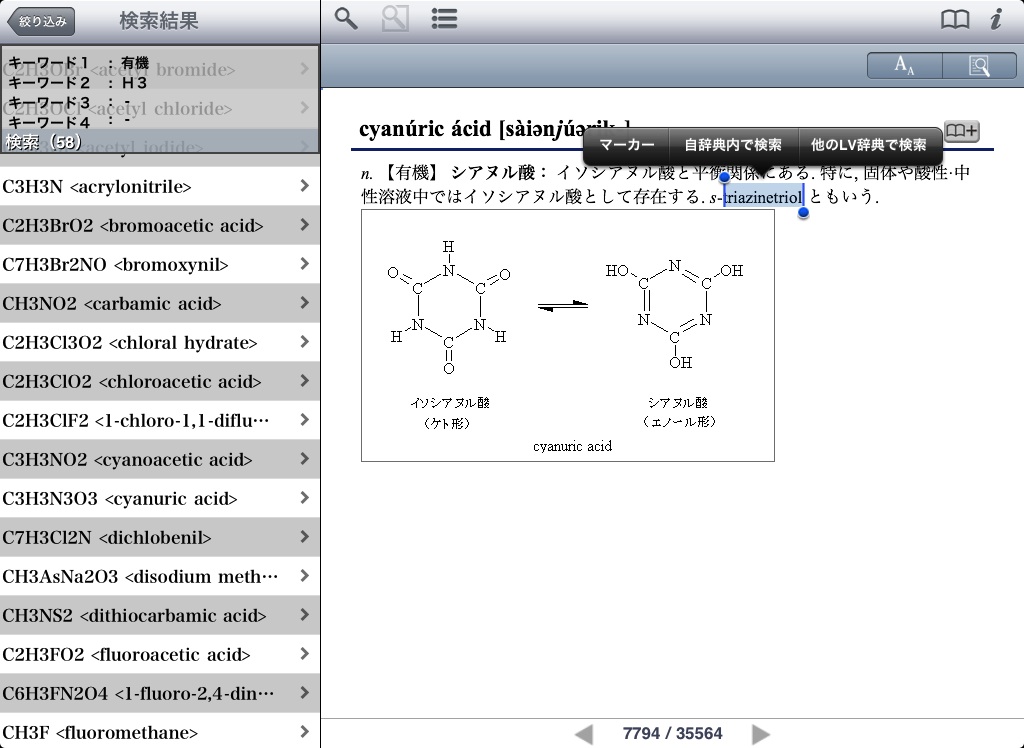 ●項目中の用語をなぞることで次々に辞書引きができるジャンプ検索機能(*要iOS3.2以降)