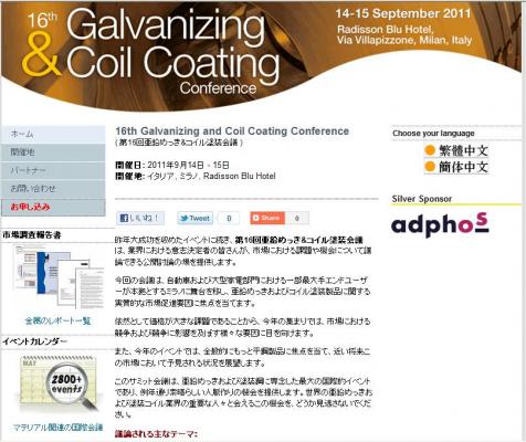 会議:「16th Galvanizing & Coil Coating Conference (第16回亜鉛めっき&コイル塗装会議)」
