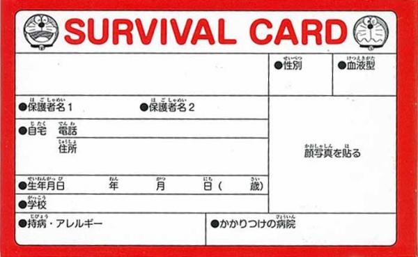 ▲緊急時に家族同士で連絡が取り合える、スペシャルカード「サバイバルカード」付き。