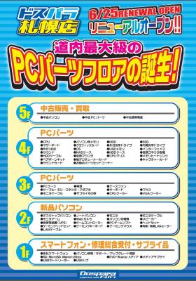 ドスパラ 札幌店、2011年6月25日(土)のリニューアルに合わせ、「リニューアルオープニングセール」を実施いたします。