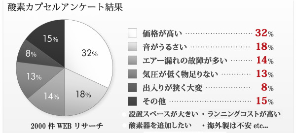 ・健康・美容に興味のある女性のアンケートでは酸素カプセルは常に上位。業界運営オーナーの導入したい機器アンケートでも常に上位でありニーズは十分過ぎる程ある。
