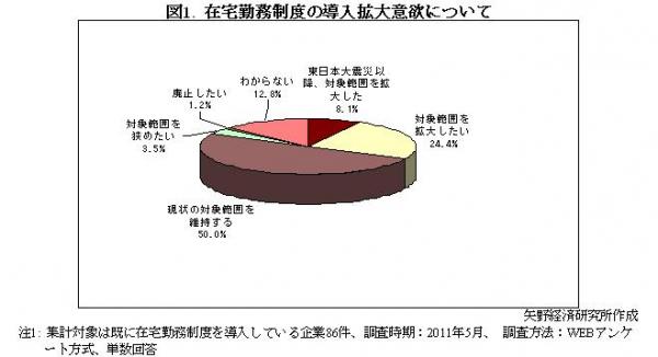 アンケート調査結果では、既に在宅勤務制度を導入している企業のうち32.5%が導入範囲拡大の意向を持っていた。
