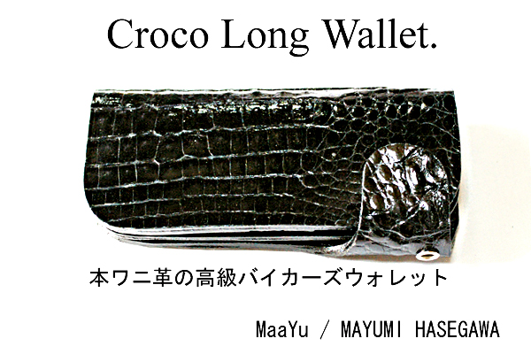 ■商品名:クロコ・バイカーズロングウォレット(ブラック)(日本製)価格 88,000円【税込み】