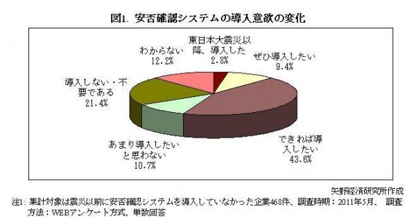 東日本大震災後、従業員の安否確認をメールなどで行うシステムの導入意欲が高まっている。震災以前に安否確認システムを導入していなかった企業に対して導入意欲を聞くと、「ぜひ導入したい」「できれば導入したい」という回答の合計が53.0%に達した。